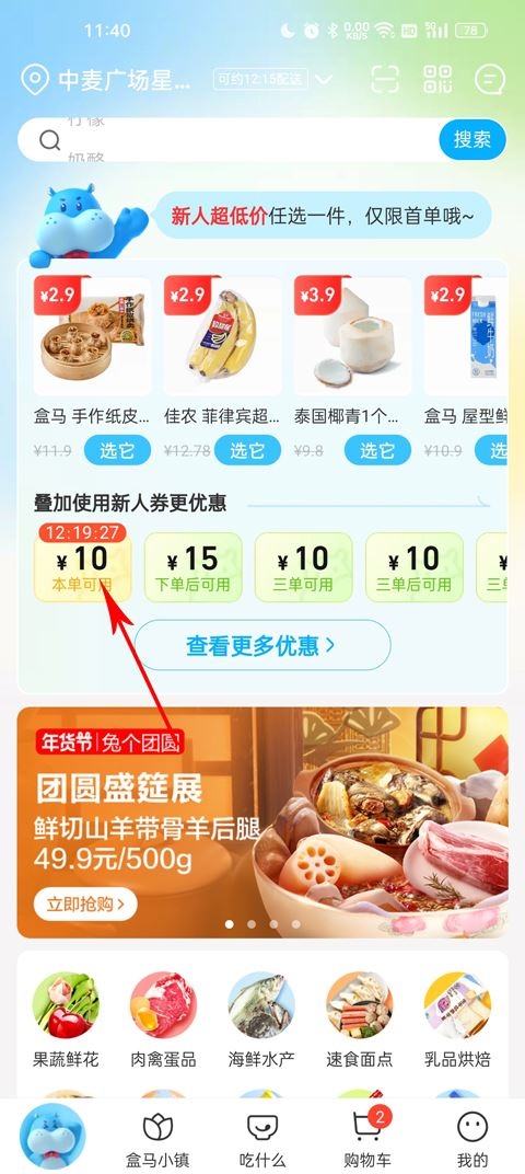 1、在首页找到新人优惠券,点击领取优惠券;