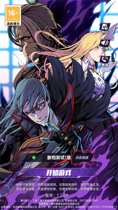 1、下载并打开游戏后,首先需要选择“服区”。