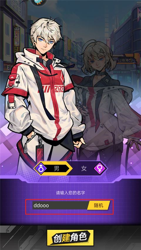 4、在这里你需要创建角色,选择性别并输入名字。
